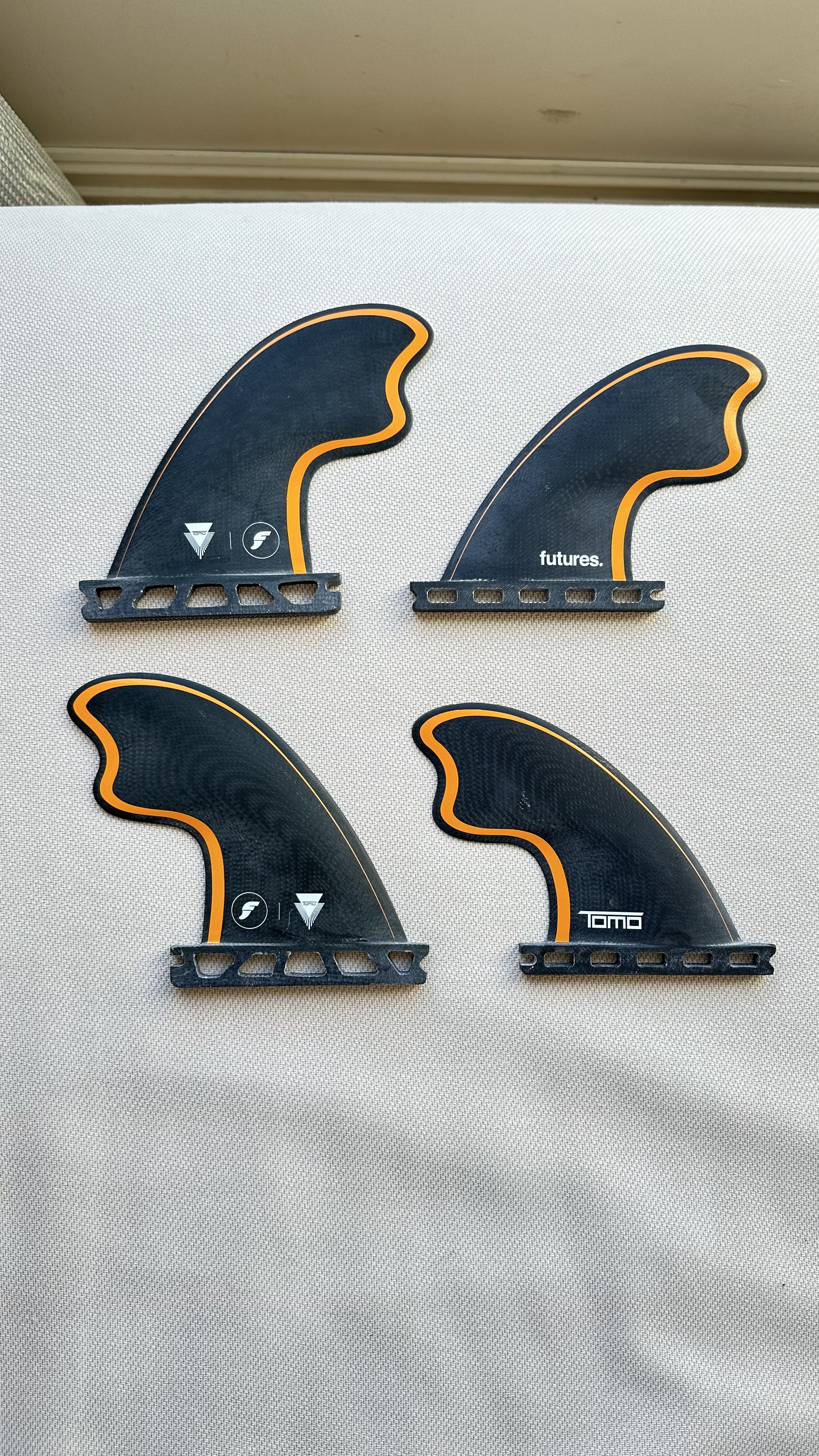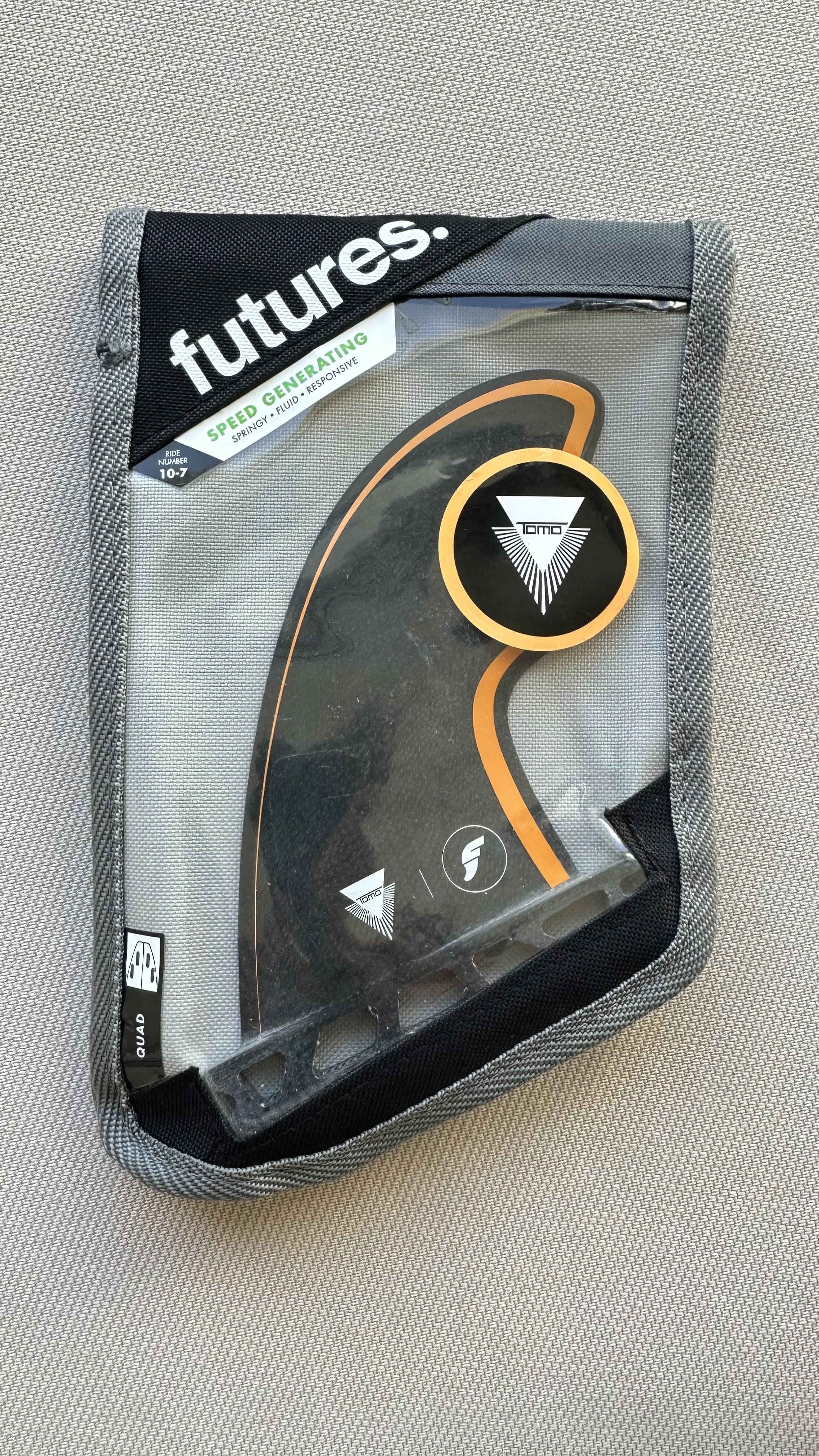 The Tomo Quad, designed by Daniel Thompson of Tomo Surfboards, is a unique fin set-up designed around the El Tomo Fish model. With such a futuristic appearance, it’s no surprise these fins create the most speed and sharpest turns imaginable. The majority of the fin sits deep in the water, creating lift and acceleration. In combination with the flat foil front and rear fins, the cut-away base allows for quick direction changes, and maneuverability. Undeniably, they’re something everybody who loves quads must try