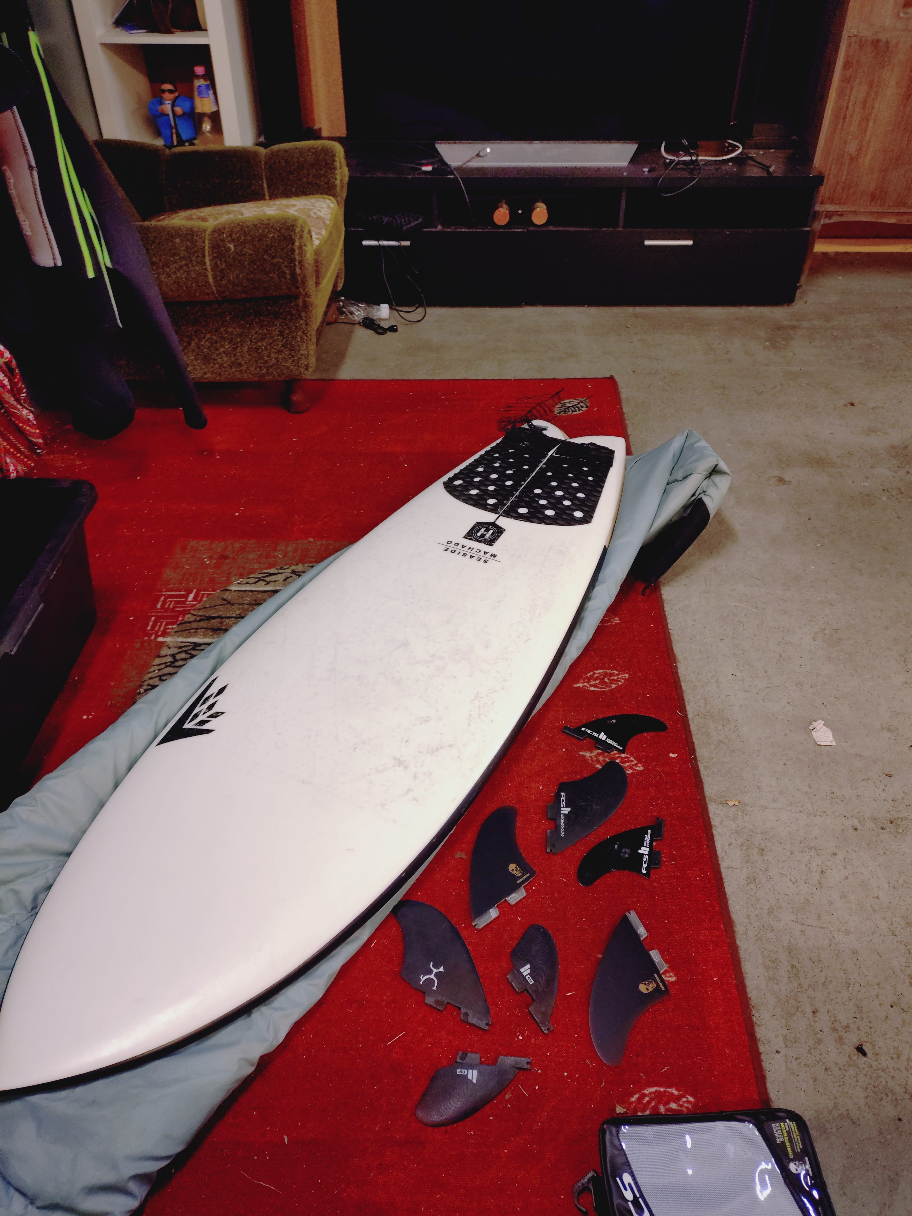 Lite brukt. 2 sett med finner følger med. Hatt en ding som har skjedd under reise, profesjonellt fikset. Kan plukkes opp i Jæren område eller rundt Haugalandet